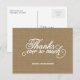 Eine skurrile, rustikale Dankescharte mit einem kraftpapierartigen Hintergrund und dem Text "Danke immer so viel" in einem schönen Kalligraphieskript.
