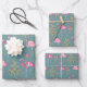 Kraft Pink Flamingos Mingling an einem Weihnachtsf Geschenkpapier Set
