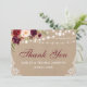 Kraft Rustique Mariage Aquarelle Bourgogne Marsala Floral Guirlandes Lace Carte de Remerciement