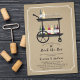 Bar Cart moderne Stock the Bar Couples Shower Invitation avec un char élégant avec des bouteilles de vin et d'alcool et des verres sur un arrière - plan kraft populaire avec une face arrière assortie.