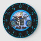 Sehr cool aussehendes Motorrad mit Flipper und Karten im Hintergrund Design Wanduhr. Elektrisch blaues Thema. Ein tolles Geschenk für den Biker in deinem Leben.
