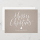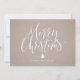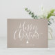Minimalistische Weihnachtskarte mit handgeschriebener Kalligraphie und Weihnachtsbaum in Weiß auf einem Hintergrund aus Kraftpapier, einfach, modern und elegant. Große Weihnachtskarten für Familie und Gesellschaft.