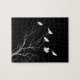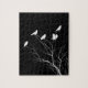 Probieren Sie dieses Rätsel von Krähen in einem schwarz-weißen Baum aus.