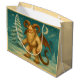 Fügen Sie Ihrem Geschenk mit dieser kühnen Krampusgeschenktasche böse Winterwünsche hinzu! Mit einem majestätischen Krampus mit weißhaarigen Hörnern, Flügeln und Schwänzen, stehend stolz in einem schneebedeckten Wunderland unter einem Sternenhimmel, Halbmond und strömendem Komet. Es ist perfekt für diejenigen, die ein wenig Unfug mit ihren mistletoe bevorzugen. Egal ob Sie sich auf die dunkle Seite stellen oder alternative Urlaubsvibes ausbreiten, diese Geschenktasche ist eine auffallende Art, "glückliche Ferien" mit einer Drehung zu sagen.