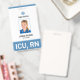 Ein modernes Abzeichen für Krankenhauspersonal wie registrierte Krankenschwestern (RN). Alle Gestaltungselemente können personalisiert sein, um die Farben Ihres Krankenhauses oder Ihres Geschäftssitzes Anzug. Ideal für Angestellte im medizinischen Bereich, die ihre Benennung deutlich sichtbar machen müssen, wie z.B. registrierte Krankenschwestern, Krankenschwestern, Krankenpfleger und Ärzte.