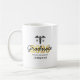 Maßgeschneiderte Tasse für den Abschluss der Kindergärten mit dem Caduceus-Symbol, 2023 in Imitaten Goldfolie, Schulname, Schülername und das Wort Absolvent in einem Skript-Schriftart.