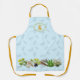 Langes Bib-Schürze mit Kräutern grenzt ganz unten. Süße Libellen bedecken den hellblauen Hintergrund. Fügen Sie oben einen Vornamen in Goldfarbe, in einem dekorativen Panel ein. Die Gurte passen zum goldenen Buchstaben. Ein wunderschönes Geschenk für einen Kräuterhändler oder Gärtner.