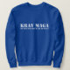 Blaues Krav Maga Sweatshirt mit weißem Text auf dem Kasten: Krav Maga - damit man in Frieden gehen kann.