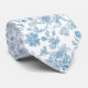 Erfrischen Sie Ihre Garderobe mit unserem neuen Krawattendesign, das ein elegantes Toile-de-Jouy-Chinoiserie-Blumenmuster in Blau zeigt, das schön vor einem maßgeschneiderten weißen Hintergrund gerahmt ist.