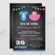 Erleben Sie Ihren Gast mit diesem niedlichen Gender-Enthusiasmus und einer blauen Babykleidung mit einer niedlichen Krawatte und einem rosa Tutu mit moderner Typografie vor einem Kreideboden. Fügen Sie einfach Ihre Veranstaltungsdetails zu dieser einfach zu bedienenden Vorlage hinzu, um sie zu einer einmaligen Einladung zu machen.