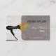 Fertigen Sie Geschäftskarte für Haarsalons, Salon u. Wellness-Center, Schönheitsgeschäft und Hairstylist kundenspezifisch an. Stilvoller Visitenkarteentwurf mit Haartrocknerillustration. Visitenkarten werden auf beiden Seiten ohne zusätzliche Kosten gedruckt.