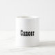 Diese Morphing-Tasse zeigt ein schwarzes Textwort Krebs auf weißem Hintergrund. Das Wort Krebs ist das vierte Sternzeichen. Wenn Sie ein heißes Getränk in die Tasse geben, erscheint das Wort Krebs. Der Name kann in einen Text oder einen Schriftzug geändert werden. Die Tasse ist eine weiße Keramik-Morphing-Tasse mit einem dunklen Griff. Die Tasse fasst elf Unzen.