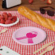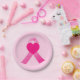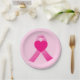 Ein rosa Band voller liebender Herzen ist auf diesen einfachen, aber süßen Breast Cancer Awareness Party Papier Teller. Text ist für Sie anzupassen, um hinzuzufügen.
