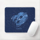 Mousepad im Zodiaksymbol für Krebs in weichem silberblauen Blau, überlagert mit den Sternen der Sterne, vor einem Sternenhimmel von tiefblauem Mitternachtsblau