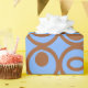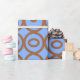 Dieses Verpackungspapier hat eine geometrische Form von Kreisen in Reihen mit Kreise oder Ovalen in Braun auf einem blauen Feld.