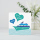 Hochzeitskreuzfahrten Rettete die 2-seitige Tageskarte, ideal für Paare, die den Knoten auf einem Kreuzfahrtschiff oder auf hoher See für eine Hochzeitsfeier oder eine nautische Hochzeit knüpfen. Das blaue Kreuzfahrtschiff und die blauen Herzen. Auf beiden Seiten einfach zu personalisieren.