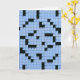 Farbphotographie eines blauen Kreuzworträtsels.