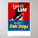Loose Lips Might Sink Ships Poster: 2. Weltkrieg - 2. Weltkrieg - 2. Weltkrieg - 2. Weltkrieg - 2. Weltkrieg. Vintage Amerikanische Kunst, Dekorator und Sammlerdenkmäler, Sammler oder Designer, Wandkunst und Plakatkunst für Historiker, Dekorateure und Designer. Dieses historische Denkmal-Poster wird aus einem 300dpi-Scan eines tatsächlichen WWII-Posters reproduziert, das entdeckt, gerettet und archiviert wurde.