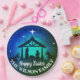 Krippe in einfachem Blau, Grün und Schwarz mit weißem Text für Sie anpassen und weiße Sterne. Rundpapier.