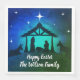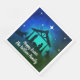 Krippe in einfachem Blau, Grün und Schwarz mit weißem Text für Sie anpassen und weiße Sterne. Standardessen Napkin.