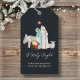 Charmante dunkelblaue Krippe religiöse Weihnachtsgeschenke Tags verfügen über eine schöne Aquarellnativitätsszene. Sie sind ideal, um die Freude der Saison mit den nächsten zu teilen. Die Worte "O Heilige Nacht" sind elegant unter der Szene geschrieben und repräsentieren den Zauber und das Wunder von Weihnachten.