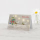 Kristallrentierkran in der Nähe eines Weihnachtsbaumes mit hellen Ornamenten. Weihnachten, Feiertage Grußkarte.