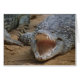 Nahes Krokodil mit offenem Mund auf dem gelben Sand