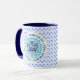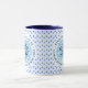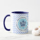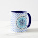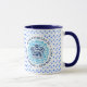 Tasse des Blauen und Weißen Kaffees mit dem offiziellen KrönungsEmblem des Königs Charles III 2023