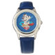 Kinderuhr aus Edelstahl mit blauem Lederarmband