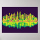 Yellow and Green Skyline of Kuala Lumpur, the capital of Malaysia. Its modern skyline is dominated by the 451m-tall Petronas Twin Towers
