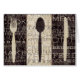 Studio de Pela de ©/Apple sauvage. Une image noire et blanche d'une fourchette, d'une cuillère et d'un couteau. L'arrière - plan a des mots écrits là-dessus.
