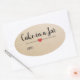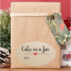 Moderner ovaler Aufkleber "Kuchen in einem Glas" mit einem Schriftart mit schwarzer Schrift auf einem Hintergrund aus Kraftpapier, der durch ein niedliches rotes Herz geschmückt ist. Text anpassen.