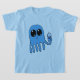 Eine niedliche blaue Krake, die einen blauen Kuchen-Cartoon hält