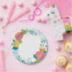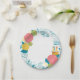 Ein hübscher Teller mit hellen Blumenmotiven und ein köstlicher Kuchen, der perfekt dazu geeignet ist, Ihrer Papierteller-Kollektion Flair hinzuzufügen.