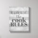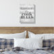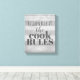 Diese Küchenwandkunst ist auf gedehnter Leinwand mit niedlichen humorvollen Zitat-Küchenregeln auf bedrängten grauen Streifen. Wandkunst für Küchendekoration.