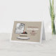 Auf der Cake-Karte finden Sie ein köstliches Stück Schokoladenkuchen, das mit einer roten Kirsche überzogen ist und auf einem grauen Teller steht. Ja! Personalisieren Sie mit Ihrem Foto. Ideal zum Geburtstag. © Morning 6