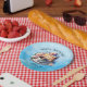 Kuchenstück, Kaffeebecher und Blume Pappteller