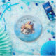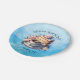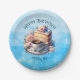 Personalisierte Teller zum Geburtstag. Hübsche rosa und blaue Rose und Blume auf einem Stück Geburtstagskuchen und einer Tasse warmen Kaffees Aquarell ai Art.