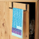 Küchentücher mit periodischem Tisch der Elemente, mit jedem Element Gruppe in Regenbogenfarben markiert.