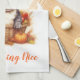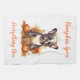 Dieses Küchentuch wird mit einem niedlichen französischen Bulldoggen-Kunstdruck für den Herbst gezeigt, Text liest Pumpkin Gewürz Alles Gute. Passen Sie dieses Objekt an oder kaufen Sie, wie es ist.