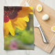 Diese schöne und lebendige Blüte ist unter vielen Namen bekannt: Gaillardia, Feuerrad, Indianerblanket, Blanket Blume und Sundance. Von modernen Naturalisten zur Herstellung von natürlichen Farbstoffen verwendet, sind die gebräuchlicheren Namen (Blanket-Blume, Indianerblanket) angeblich eine Anspielung auf die schönen Decken, die von Indianern hergestellt wurden. Auch symbolisch für das reiche nordamerikanische Erbe der Region, gaillardia wurde als die offizielle Oklahoma Staat Wildblume im Jahr 1986 gegründet. Diese schöne kleine Blüte ist auch repräsentativ für Liebe und Fürsorge. Dieses fabelhafte Küchentuch wird in der "gefalteten" Ausrichtung gezeigt, weil ich immer meine Geschirrtücher über den Ofengriff hänge.