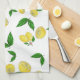 Küchentücher mit saftigen Zitronen und grünen Blät