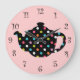 Küchenmauer mit niedlichem Teekessel-Bild mit mehrfarbigen Polka-Punkten auf der Uhrenfläche in diesem landschaftlichen Wanddekorationswecker-Design für Ihre Küche, Ihr Bad oder jedes Zimmer in Ihrem Haus, das Sie gewollt haben, um eine stilvolle Dekoration hinzuzufügen.