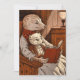 Das Bild zeigt eine warme Szene von zwei Frettchen, einem Erwachsenen und einem Jungen, sitzend in einem Holzsessel. Das erwachsene Frettchen trägt einen roten und weißen Schal und hält ein großes Buch mit einem roten Band, während das jüngste gläserne Frettchen bequem auf seinem Schoß sitzt. Der Raum wird durch eine Lampe auf einem Beistelltisch leicht beleuchtet, die ein warmes Licht auf die Bühne wirft.