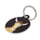 ein von gjDesigns erstellter, gestonter Kuh-Tag | Necklace hat das Bild einer gesteinigten Kuh auf der Vorderseite und ein blumengeschmücktes Will Tommy Jones Logo auf der Rückseite.