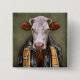 Dieses Ausrüstungsbeschreibungen ein Porträt einer Kuh in einer Lederjacke und in einem Schal.