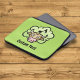 Überraschender Cartoon der Kuh. Benutzerdefinierte Hintergrundfarbe. Benutzerdefinierter Text.
