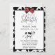 Kuh Print Baby Shower Einladungen mit einem rot-schwarz gepunkteten Bogen und Kuh Muster Hintergrund. Niedliche Grafik eines Kalbes, das entfernt werden kann, wenn Sie es vorziehen.