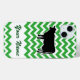 Dieses stilvolle, grün-weiße Gehäuse mit der schwarzen Silhouette einer Mookuh! Der Hintergrund weist ein sich wiederholendes grün-weißes Zickzack-Zickzack Muster mit Platz auf, um einen eigenen Namen oder eine kurze Nachricht in einem grünen Skript-Schriftart hinzuzufügen! Öffnen Sie den Volleditor, um eine andere Zickzack Farbe zu wählen!