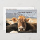 Diese lustige Postkarte mit sich bewegenden Kühen zeigt ein Foto einer lustigen Kuh auf einer Ranch des Westerns. Fügen Sie Ihre persönlichen Daten hinzu, um dieses Design zu Ihrem eigenen zu machen! Schicken Sie diese humorvolle Ankündigung, um alle über Ihren neuen Standort lassen. Fotografie erstellt von der preisgekrönten Fotografin Maria Jeffs.
